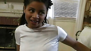 Booty short haired black haired dark skinned teen gets engulfed with riding a manhood