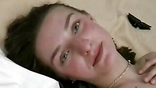 White slutty chick got her cock-squeezing pussy pummeled hard in her bedroom