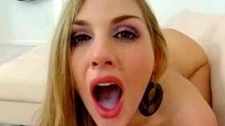 Exotic German blonde likes eating cum after having sex